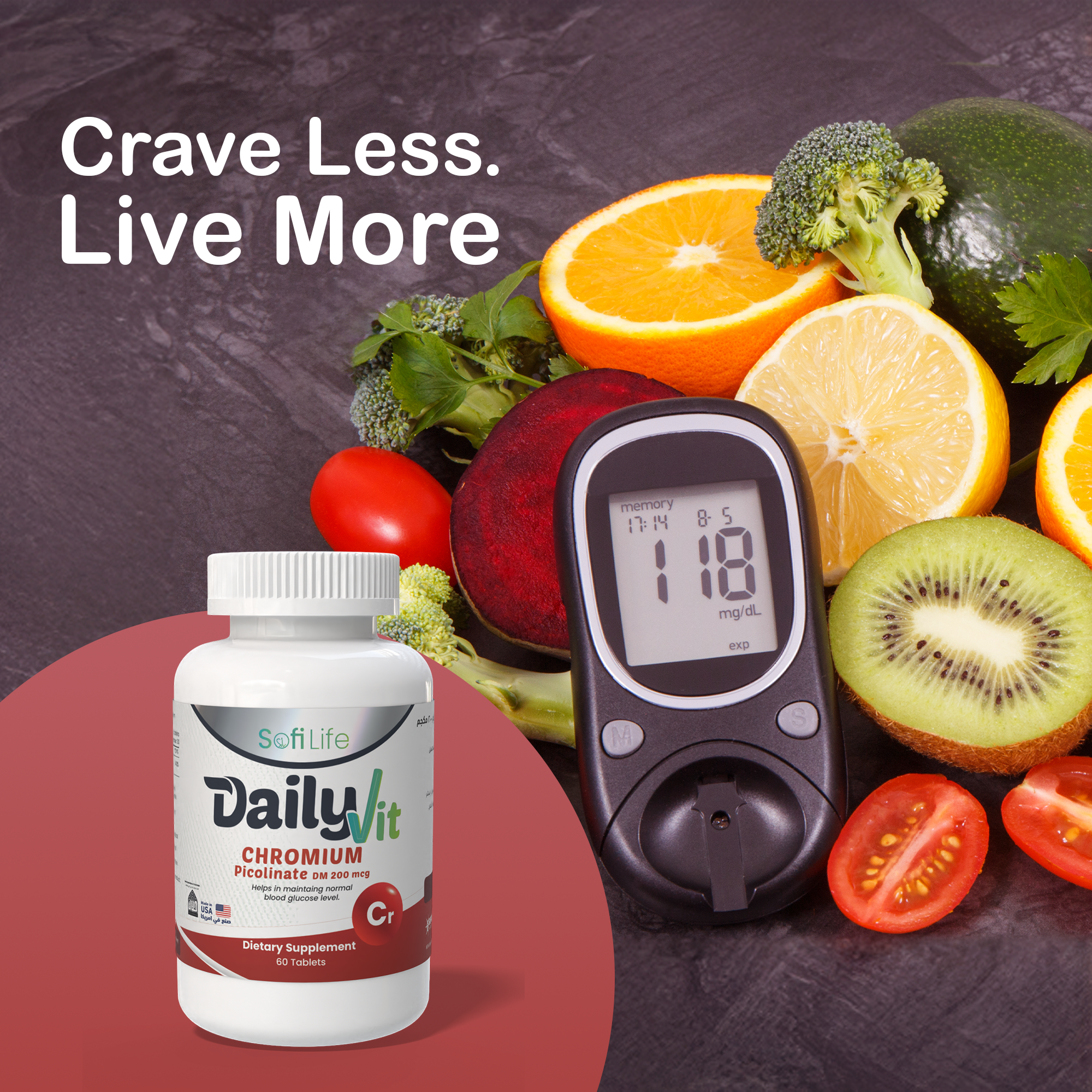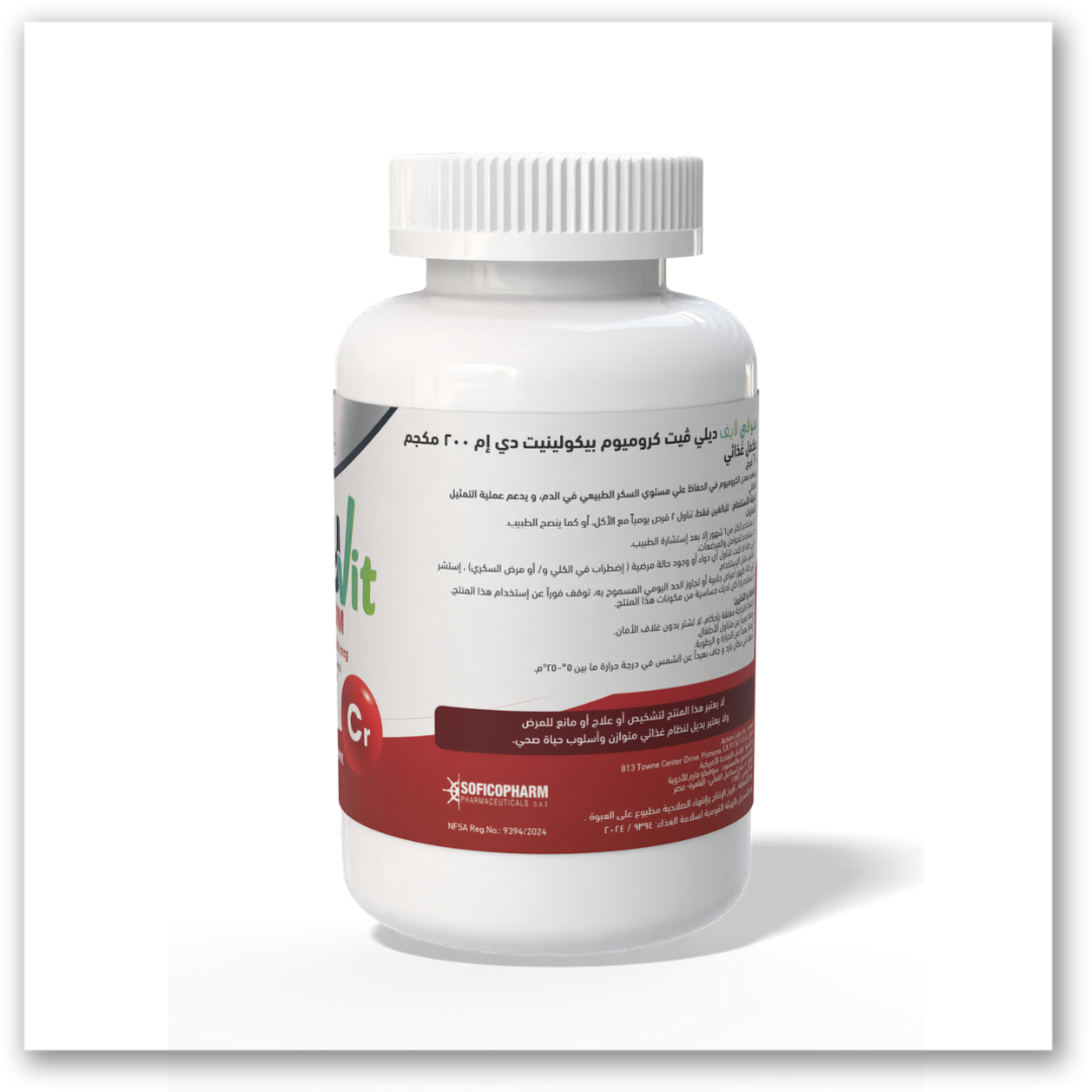 ديلي فيت كروميوم بيكولينات 200 ميكروجرام لدعم مستويات السكر الصحية في الدم وتعزيز التمثيل الغذائي الصحي.