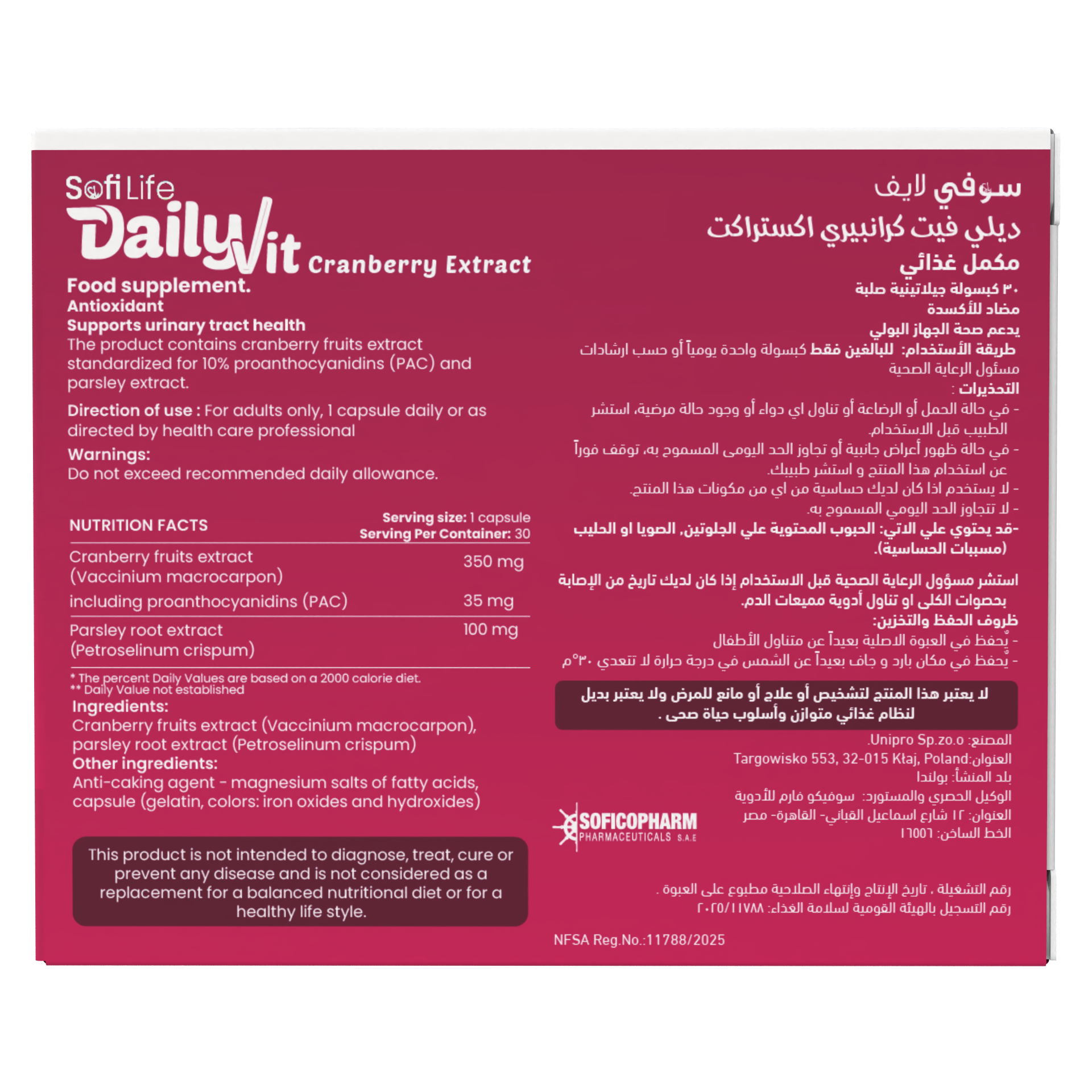 – ليست علاجًا: لا يُقصد بها علاج التهاب المسالك البولية النشط، بل تُستخدم للوقاية والدعم.