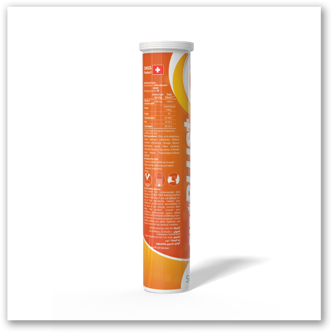 فيز بلس فيتامين سي هو تركيبة سويسرية فوّارة عالية التركيز تحتوي على 1000 مجم من فيتامين سي في كل قرص.