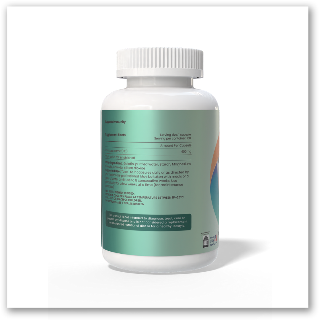 Echinacea Purpurea (Aerial parts) – 400 mg: Traditionally used to enhance immune system activity, reduce cold symptoms, and support respiratory health.