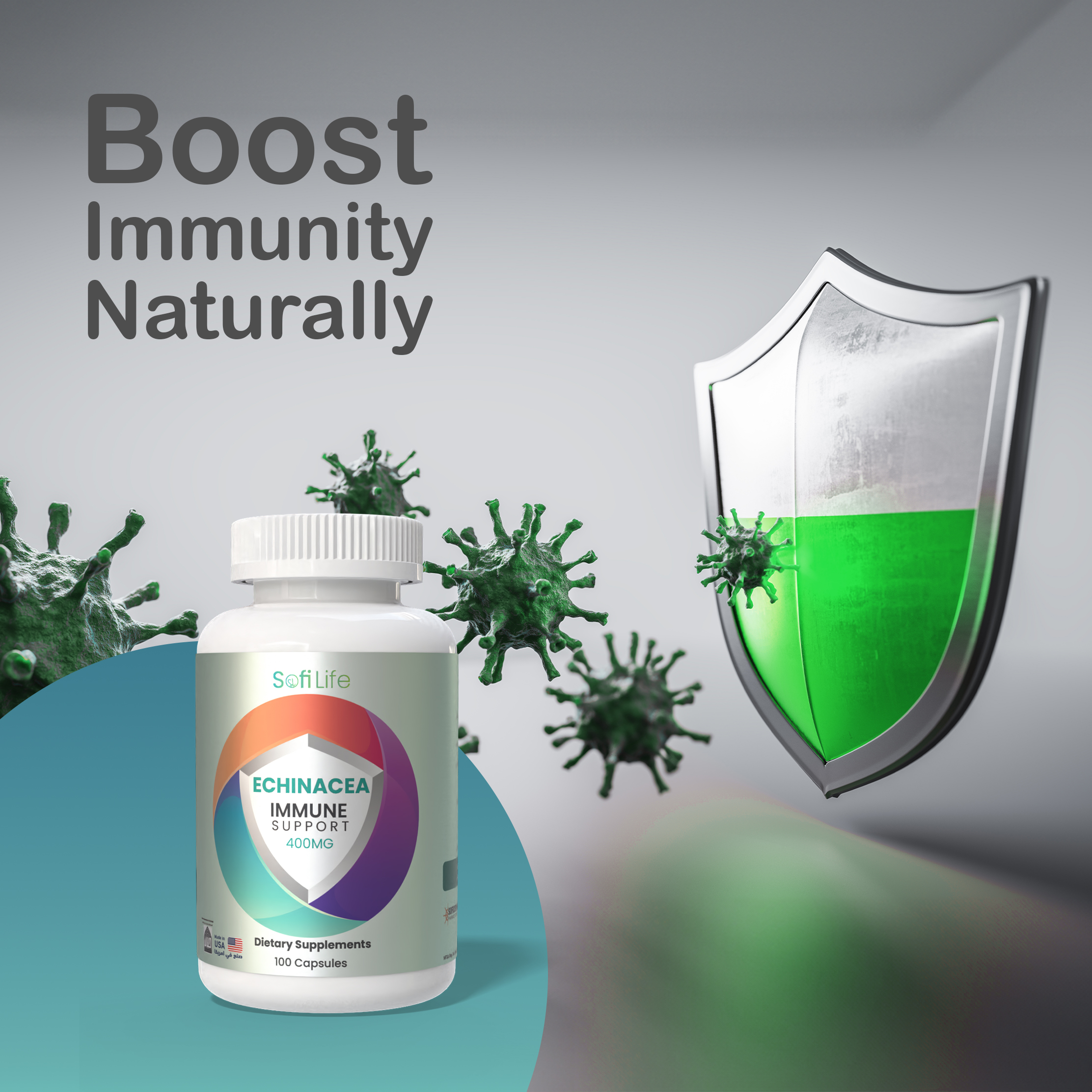 IMMUNO BOOST Echinacea 400 is a natural immune support supplement made from premium Echinacea Purpurea, trusted to strengthen the body’s defenses and reduce the duration of cold and respiratory symptoms.